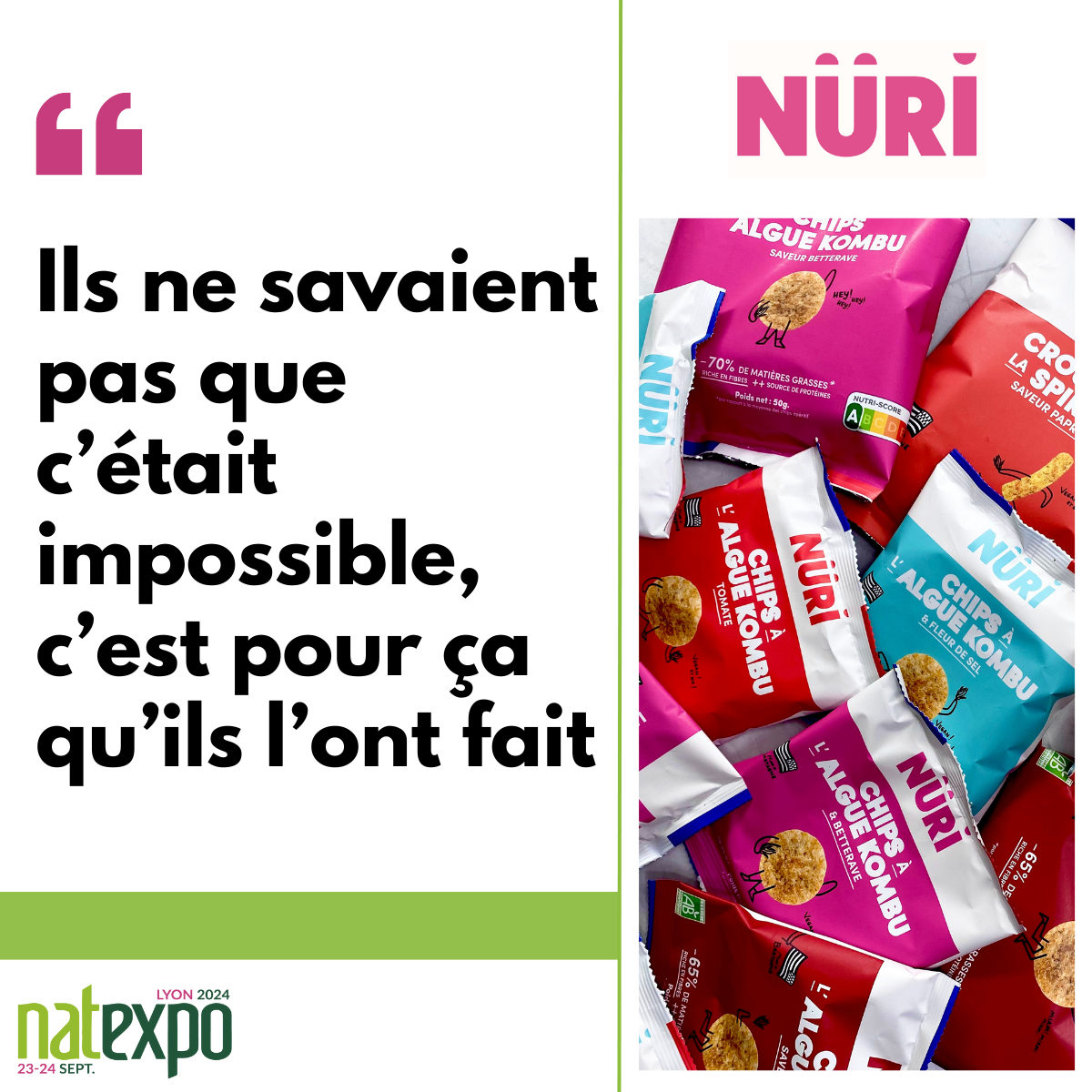 Nüri participera pour la première fois cette année à Natexpo. On vous les présente 🫚. Nüri est une entreprise bretonne créée en 2020 qui utilise des légumineuses associées à des extraits d’algues marines pour proposer entre autres des produits apéritifs cleans, gourmands et abordables. 𝟑 𝐛𝐨𝐧𝐧𝐞𝐬 𝐫𝐚𝐢𝐬𝐨𝐧𝐬 𝐝𝐞 𝐝𝐞́𝐜𝐨𝐮𝐯𝐫𝐢𝐫 𝐯𝐨𝐭𝐫𝐞 𝐞𝐧𝐭𝐫𝐞𝐩𝐫𝐢𝐬𝐞 👉 Une équipe…