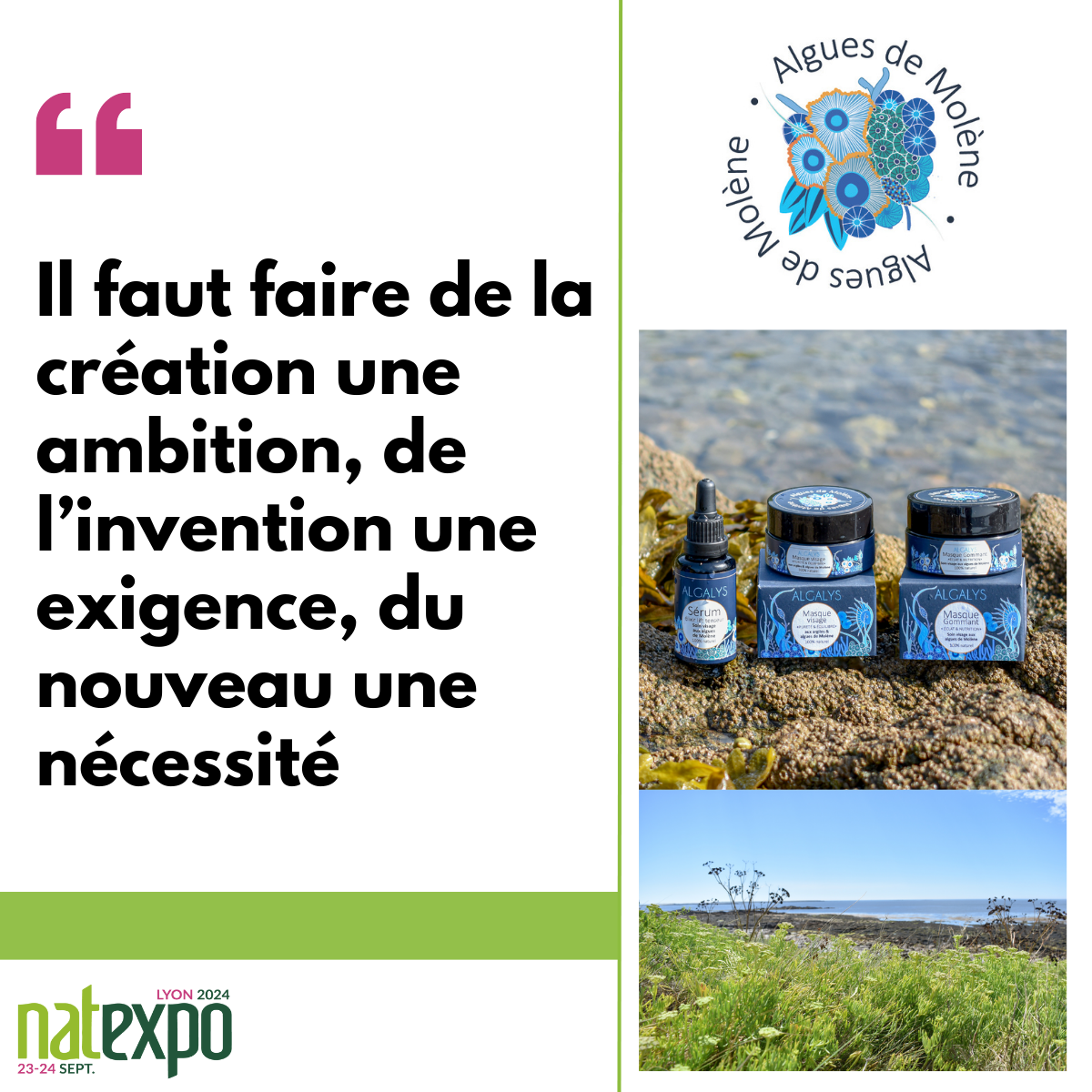 Algalys participera pour la première fois cette année à Natexpo. On vous les présente 🌊. ALGAYS est une ligne de soins marine bio pour le visage. Elle est conçue comme un voyage au cœur des sens. Retrouver force et vitalité, lutter contre le stress qui perturbe le corps et l’esprit, relancer les mécanismes naturels…