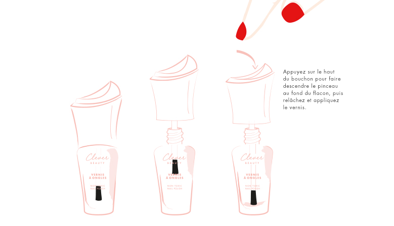 Une ambition aussi portée par les vernis de la marque Clever Beauty. Fini le vernis qui sèche au fond du flacon avant d’avoir terminé le produit : le bouchon anti-gaspi permet, par une simple pression, de faire descendre le pinceau au fond du flacon pour récupérer le maximum de produit. Cette invention, qui permet de récupérer environ 20% de vernis en plus, a été nommée « Talent INPI ».
