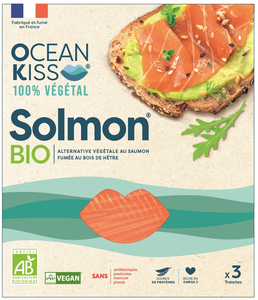 Côté mer, Ocean Kiss 100% Vegetal lance son Solmon : la première alternative au saumon 100% végétale et bio doublement brevetée à base de plantes et d’algues marines. Une recette fabriquée en France et traditionnellement fumée au bois de hêtre, meilleure pour l’océan et la planète, et bonne pour la santé car riche en Oméga 3, fibres et protéines.