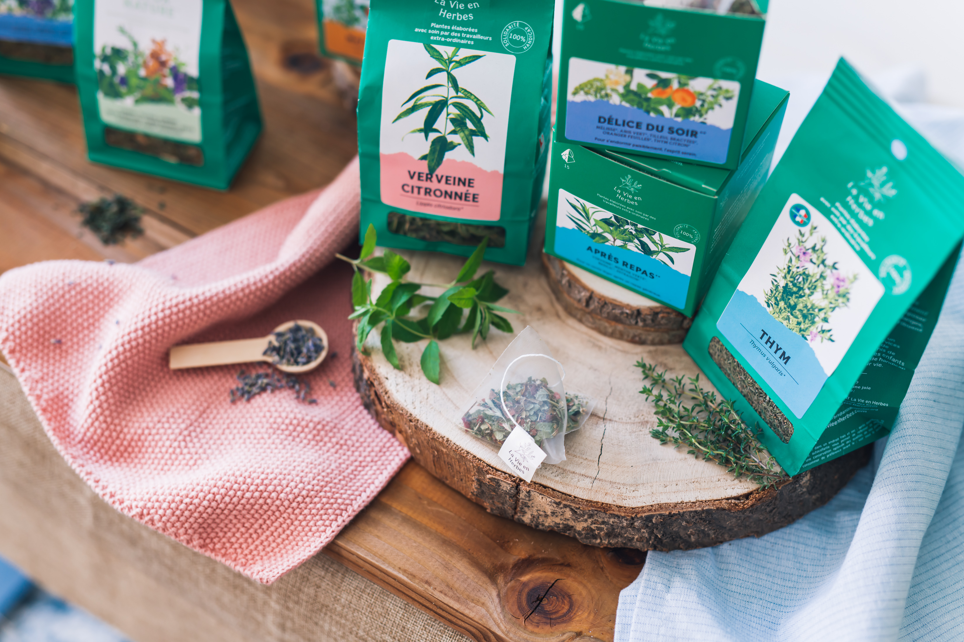 Marque bio, La Vie en Herbes propose des tisanes bio, du thé vert bio, des aromates bio pour la cuisine… C’est également un projet solidaire qui promeut l’insertion professionnelle de personne en situation de handicap. Les nouveaux packagings et emballages sont également éco-responsables : la marque s’engage pour la nature, pour le bien-être des consommateurs avec des partenaires durables