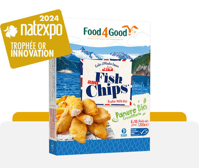 Aiguillettes de colin d’Alaska façon Fish & Chips FOOD4GOOD – SOVINTEX Enrobées d’une pâte à beignet bio légère et croustillante à la farine d’épeautre et composée de 8 ingrédients seulement !