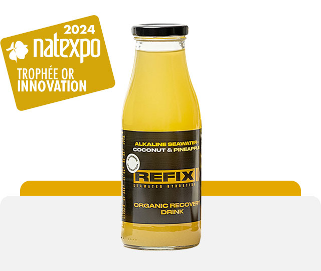 REFIX Coconut & Pineapple REFIX SEAWATER HYDRATION 🇪🇸 REFIX est la seule boisson de récupération 100% naturelle à base d’eau de mer pure, conçue pour réhydrater et reconstituer des minéraux perdus.