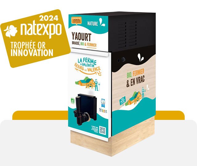 Facile d’utilisation et compact, notre distributeur de yaourt permet de proposer un super yaourt bio fermier directement en vrac !