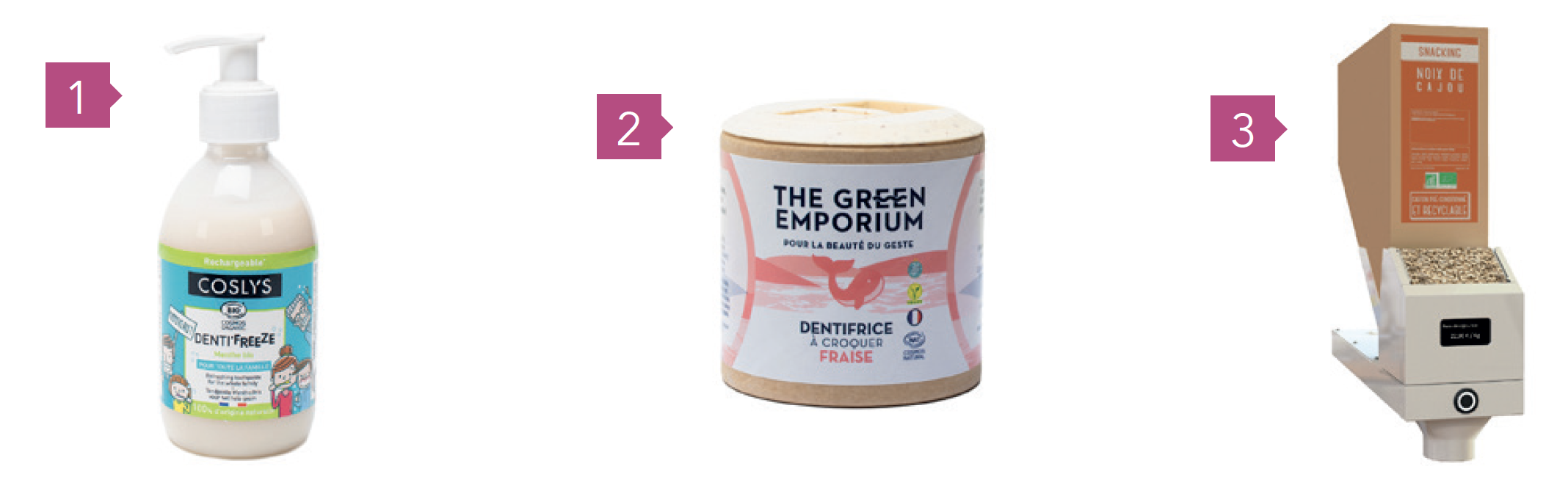 - Dentifrice à croquer à la fraise pour enfants, le zéro déchet facile et ludique pour les enfants, par Lamazuna, stand K11.