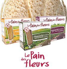 Les tartines Spécial matin douceur du Pain des fleurs (Ekibio), déjà toastées, combinent craquant, richesse de goût et valeur nutritionnelle. Fabriquées à partir de farines de riz demi-complète, de mais, de souchet, elles sont sans sucres ajoutés, ni matières grasses ni allergènes.