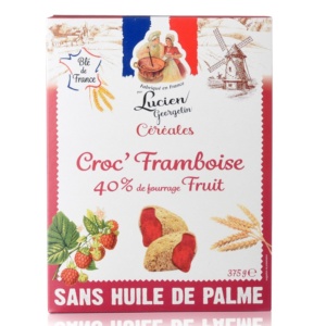 Pour remplacer les céréales ultra-transformées du petit déjeuner, Lucien Georgelin a développé Croc’framboise, une recette sans huile de palme, ni huile hydrogénée. Et pour un maximum de plaisir, les céréales contiennent 40% de fourrage framboise.
