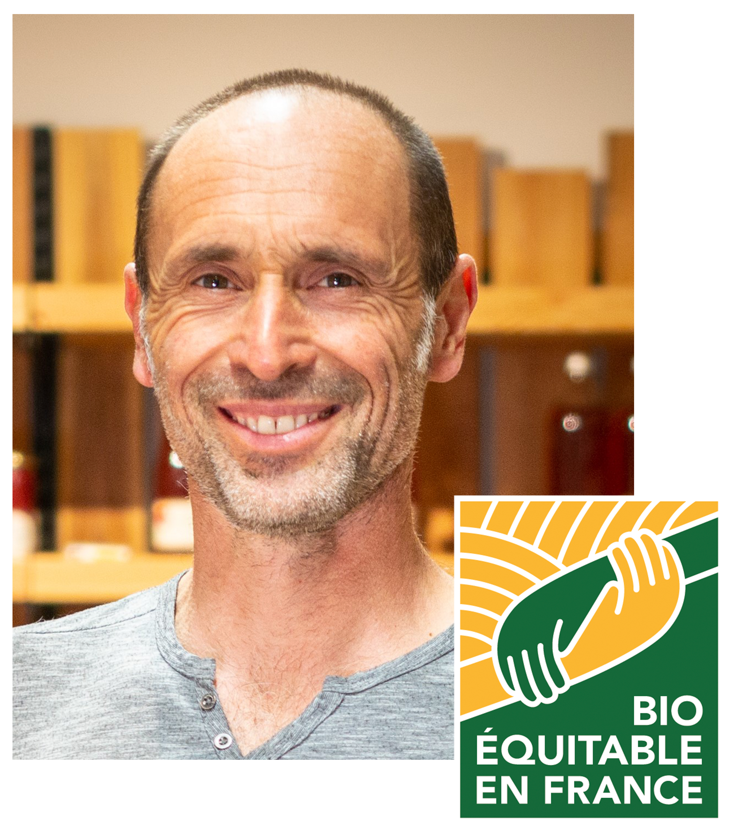 Je m’appelle Cyrille Moulin et je suis le président du label de commerce équitable BIO EQUITABLE EN France. Je suis également producteur de fruits rouges et maraîcher dans les Monts du Lyonnais. En 2012, en collaboration avec deux autres paysans producteurs de fruits, nous avons monté une unité de transformation, Terretic, à côté de nos fermes. Cette unité produit des confitures, purées, coulis à notre marque. Engagés de longue date dans le commerce équitable, nous avons initié puis accompagné la création du groupement Etic Monts Bio pour commercialiser ensemble nos fruits rouges, fraises, framboises, groseilles, etc. Ce jeune groupement de producteur est passé de 5 adhérents en 2020 à 17 cette année.
