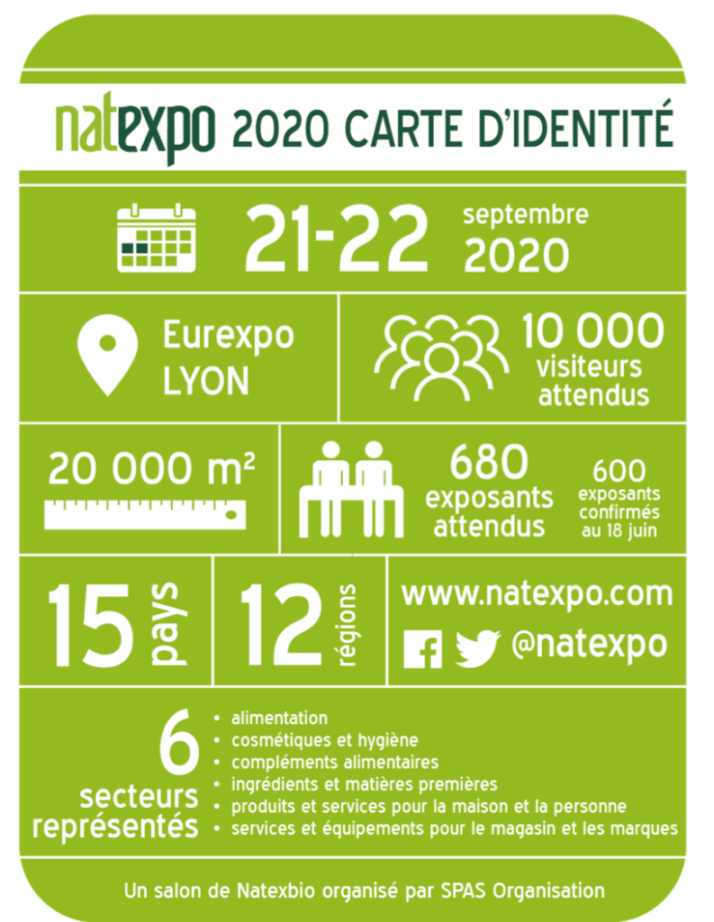 SPAS ORGANISATION, société organisatrice de NATEXPO, et NATEXBIO, Fédération française de la filière bio, se félicitent de la parution du décret ministériel du 27 juillet confirmant l’autorisation de la tenue des salons et congrès à partir du 1er septembre. Grâce à la confiance portée par les exposants et le soutien de l’ensemble de la filière, NATEXPO ouvrira bien ses portes comme prévu, les 21 et 22 septembre prochain à Eurexpo Lyon.