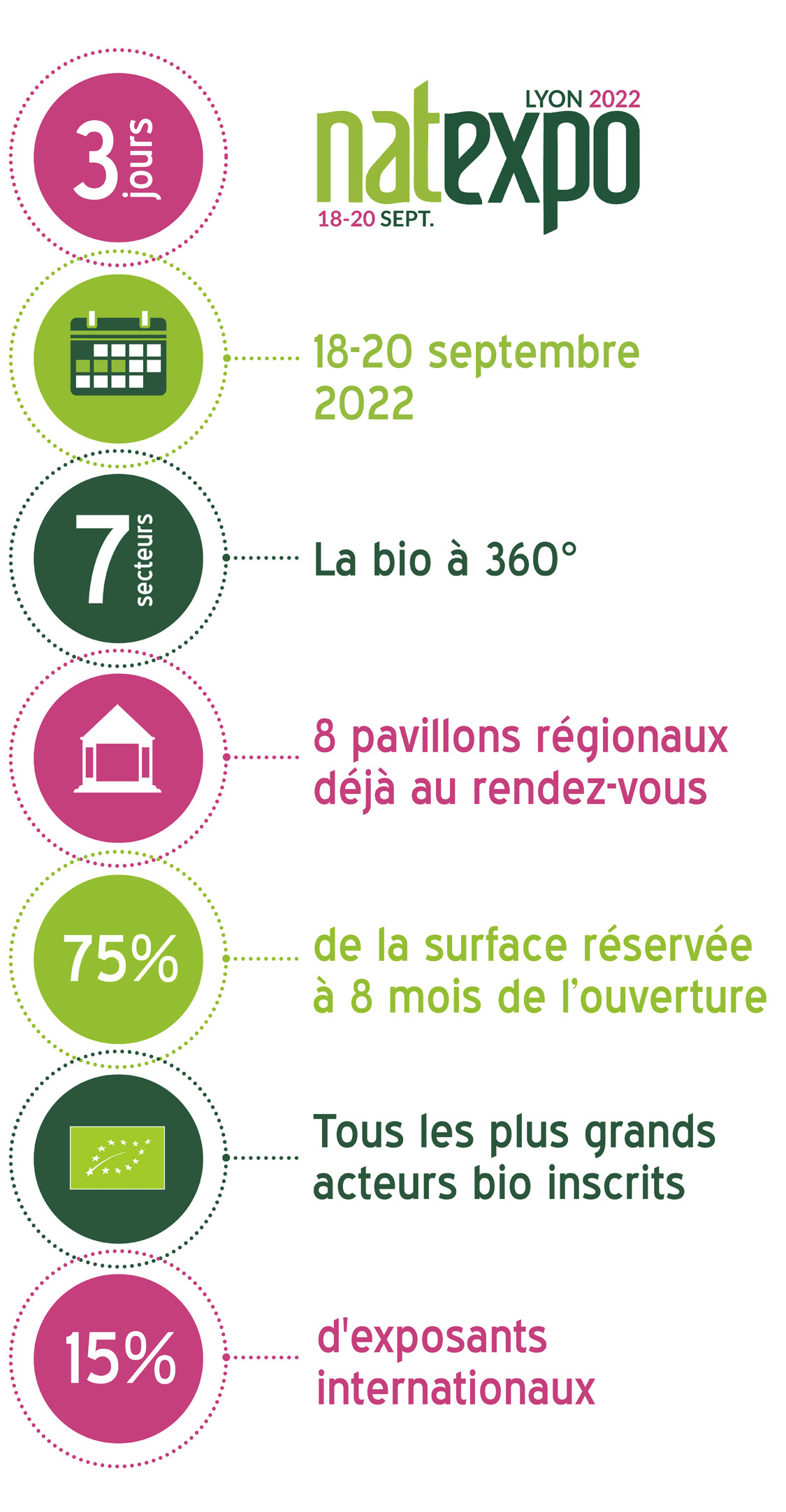 NATEXPO maintient une nouvelle fois le cap. Fortes de leur expérience, les équipes de ce salon de référence sont en effet à pied d’œuvre pour que cet événement majeur de la bio en France et en Europe soit un nouveau succès. L’édition lyonnaise aura lieu sur trois jours, du dimanche 18 au mardi 20 septembre.