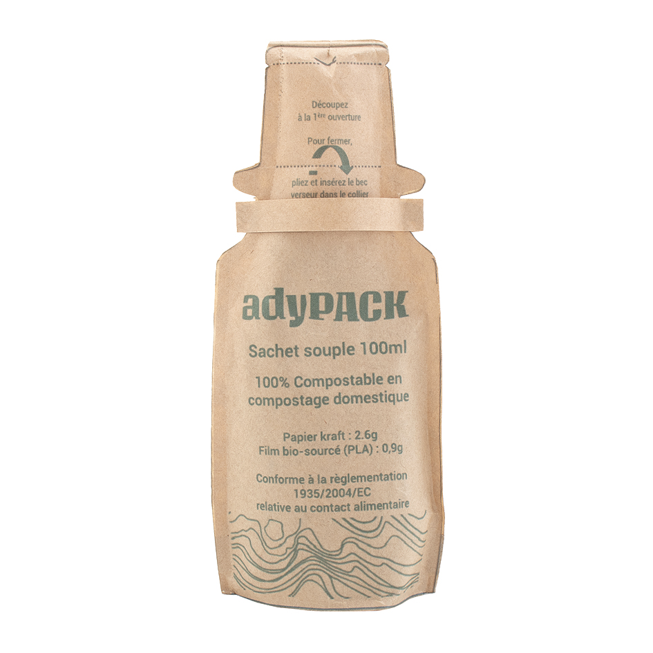 - Le sachet AdyPack, sans plastique, compostable, refermable, pour les gélules, les poudres et sels cosmétiques et les épices et herbes aromatiques