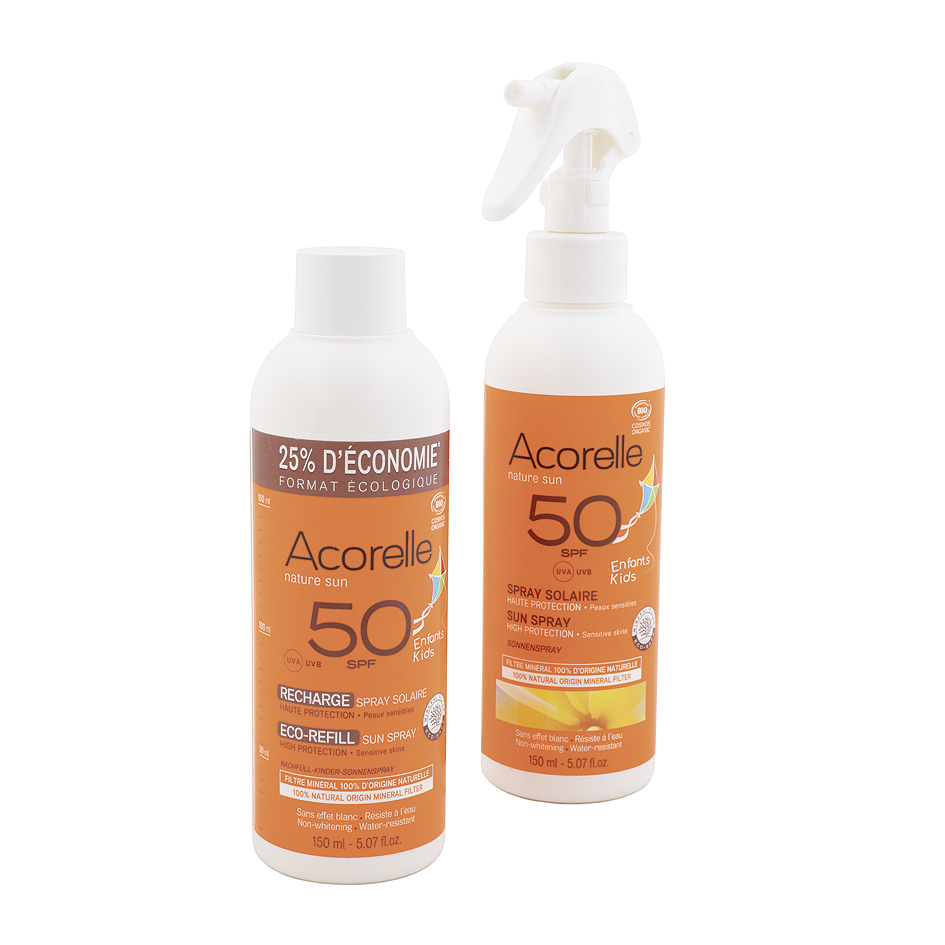 - La toute première recharge de spray solaire SPF50, par Acorelle