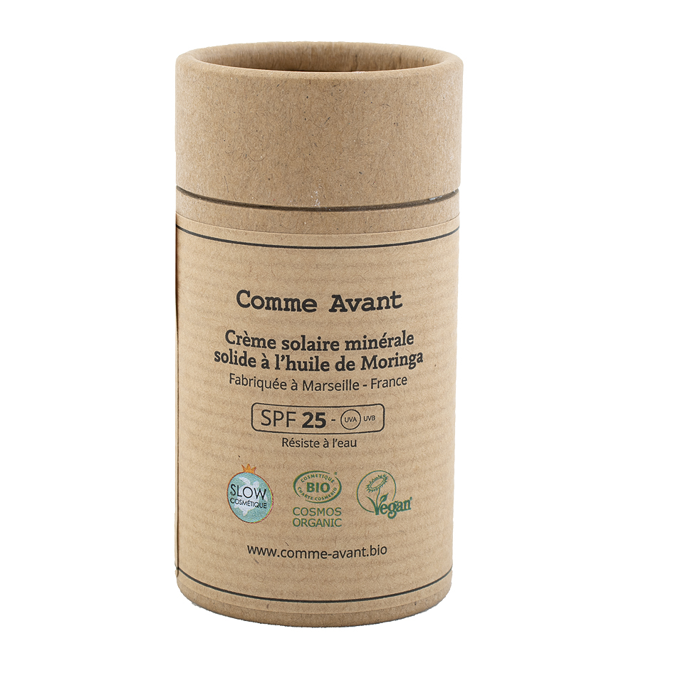 - Crème solaire minérale solide à l’huile de Moringa, par Comme Avant
